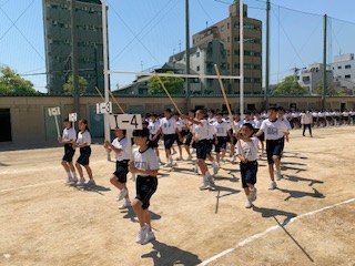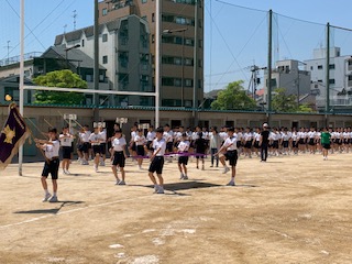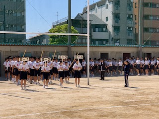 全体練習を行いました。快晴の中、水分補給と休憩をとりながら、一生懸命頑張りました。