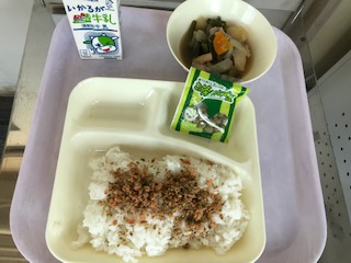 給食では、「紅ざけそぼろ」のほかに「ツナ大豆そぼろ」「牛ひじきそぼろ」などが登場しています。