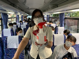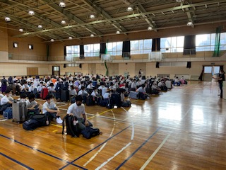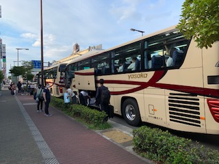 旭東中学校を予定通りバスで出発しました。