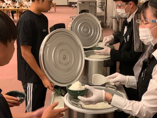 ご飯 味噌汁 ジュース お茶 おかわり自由です。お腹いっぱい食べてください。