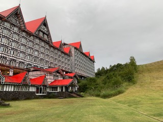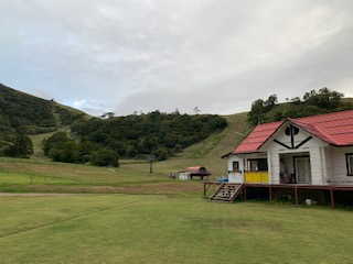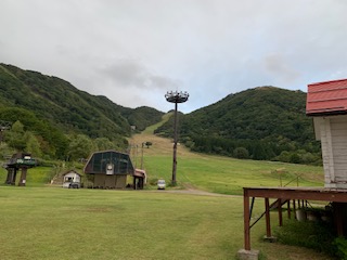 おはよう御座います。現在、6:15です。雨は降っていませんが、どんよりとした厚い雲におおわれています。ホテルの裏側がスキーゲレンデになっていますので、そちら側から撮った写真です。