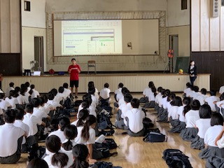 生徒は、学年ごとに説明を受けた後、各家庭に帰り、自宅と学校の各パソコンの間で双方向通信の接続テストを行いました。