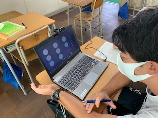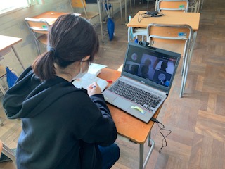 生徒が帰宅した後、各家庭と学校との間で、パソコンを使った双方向通信のテストを行いました。ほぼ予定通り、画像と音声の両方を使って、生徒と先生との通信を行うことができました。