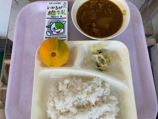 ポークカレーライス[米粉]・はくさいのピクルス・みかん・牛乳