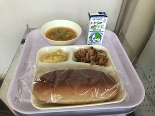 大阪市の給食では、「大学いも」「くりきんとん」「豚(ぶた)汁(じる)」などにさつまいもを使っています。今日は、「スイートポテト」が登場します。