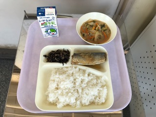 ごはん・さんまのみぞれかけ・みそ汁(しる)・牛ひじきそぼろ・牛乳