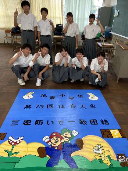 生徒会のメンバーが力を結集して、今年度の体育大会スローガンを書きあげました。