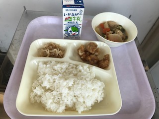 ごはん・あげどりのねぎだれかけ・含(ふく)め煮(に)