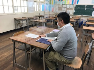 各教室に、管理作業員さんが作成したパーテーションを設置しました。懇談会よろしくお願いします。