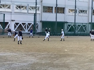 今朝も早くから、野球部が元気良く練習しています