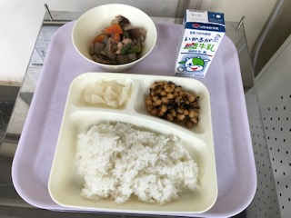 ごはん・筑(ちく)前(ぜん)煮(に)・ひじき豆・だいこんのゆず風味・牛乳