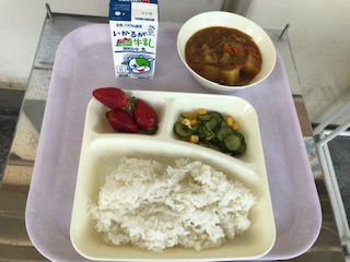 特にビタミンCを多く含(ふく)み、いちご3個で約24mgのビタミンCを摂(と)ることができます。これは、給食1食分の基準量の約70%にあたります。ビタミンCには傷の回復を早めたり、抵(てい)抗(こう)力(りょく)を高めたりするなどの働きがあります。
