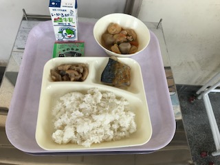 ごはん・さごしのおろしじょうゆかけ・一口がんもとさといものみそ煮(に)
