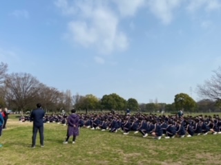 鶴見緑地に到着しました。快晴のもと、いよいよ出発です。
