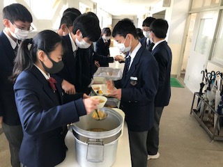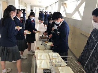 今日の給食は、休校になった学校の分も旭東に送られてきたので、山盛りでした。