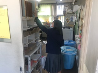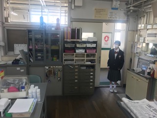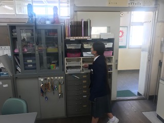 日直や学代が、職員室に日誌や出席簿を取りに来ています