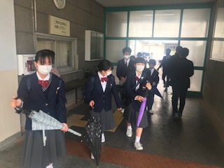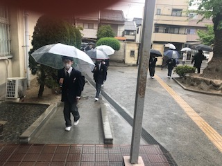 少し空が明るくなってきましたが、雨足はあまり弱まっていない中での登校となっています。
