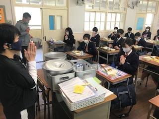 2年生の給食前の様子です。緊急事態宣言中は食べたら下校です。寂しいですねえ。