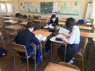 5連休明けですが、先行登校組はしっかり学習しています。通常登校の皆さんも、遅刻しないように来てください。本日より更衣調整期間ですので、それぞれの体調に合わせて、服装を考えてください。