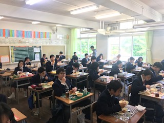 今日は2年生の昼食の様子です。みんな元気です。これから下校するのが惜しいです。
