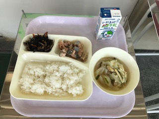 さけのごまみそ焼き・五目汁・ひじきのいため煮・ごはん・牛乳