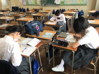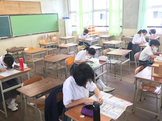明日から4時間、来週から6時間授業が始まりますので、この形式は今日で最後です。通常登校の皆さんも、明日は8時25分までに登校してください。今日は登校時、雨模様ですよ。