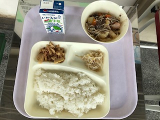 肉じゃが・もやしのゆずの香あえ・ごまかかいため・ごはん・牛乳