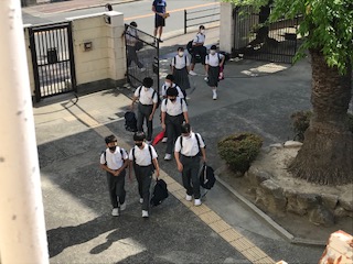 朝から太陽の光を浴びて登校しています。雨になるとは思えないですね。