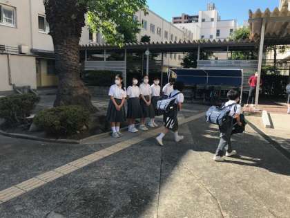 公民委員の大きな声のあいさつが響く、快晴の朝です