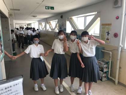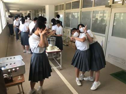 お昼休み、これから給食の時間です。3年生の校舎に来ると、いつも元気のパワーに圧倒されます。