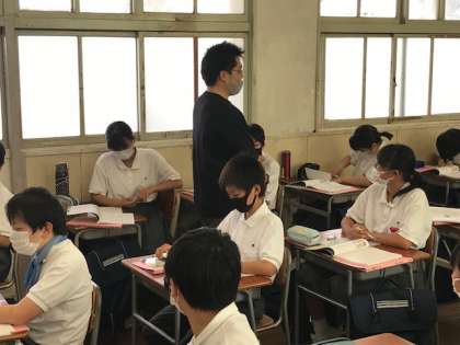 1年生の道徳の授業です。道徳の担当は毎回交代していますので、生徒達も新鮮な様子でした。