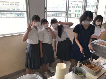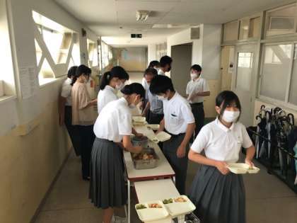 3年生の配膳の様子です。1学期最後の昼休みなのに、外で遊べなくて残念です