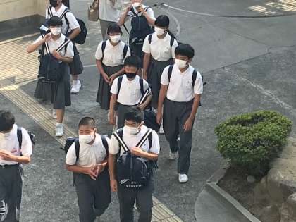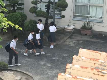 今朝は太陽が降り注ぐ中での登校です。今日も暑くなりそうですね。