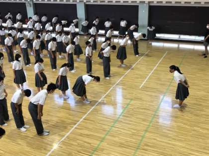 臨時の学年集会で、主任の先生から3年の修学旅行についての連絡がありました。またプリントを持ち帰りますので、3年保護者の方はご覧になってください。