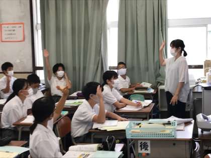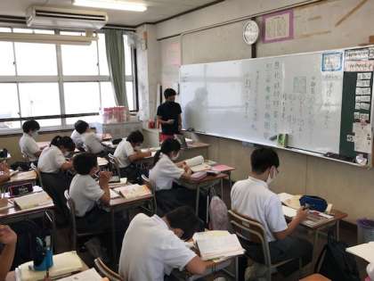 旭東中では、今日も元気に授業行っています。1年1組の英語、2組の国語です。