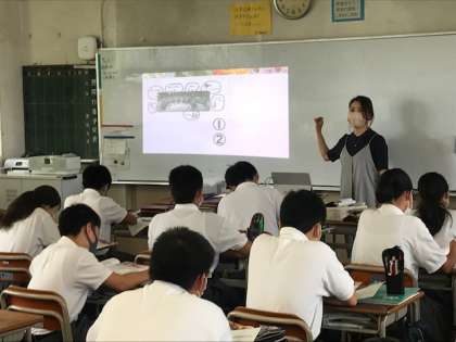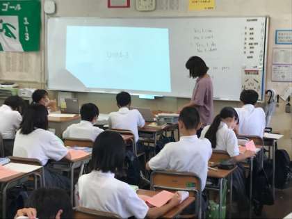 今日も1年生の授業は、活気があり元気いっぱいです。4組の音楽、3組の英語です