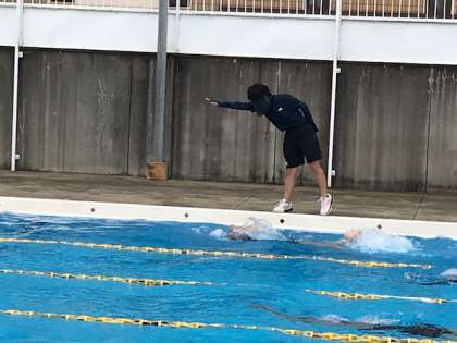 2年5組の水泳の授業です。今学期の水泳の授業は、今週で最後です。思う存分泳いでほしいです