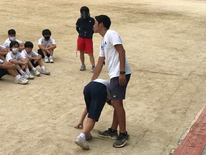 1年3/4組の体育の授業です。今日は男女合同で、体育大会へ向けてスタートの練習です。