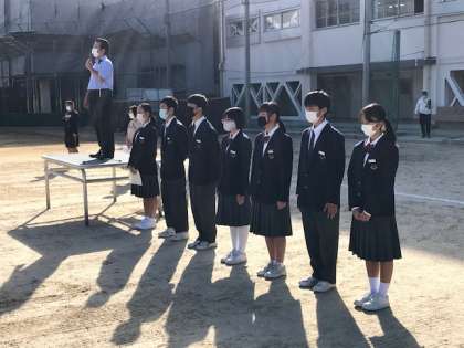 快晴の肌寒い月曜の朝を迎えました。季節が一気に進んで、冬服ブレザーの生徒が増えました。