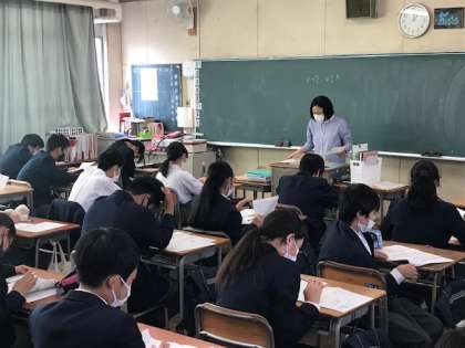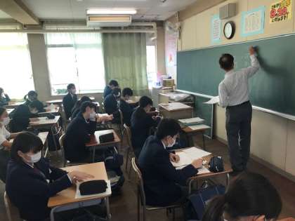 3年生の授業は、今日は実力テストの返却・解説が5教科で行われています。