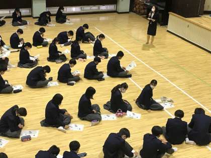 3年生は5限、集会室で今後の進路スケジュールについて話を聞きました
