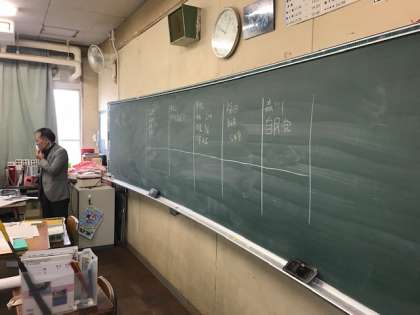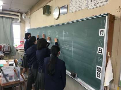 3年1組の社会です。知っている政党名を時間内に書いています。