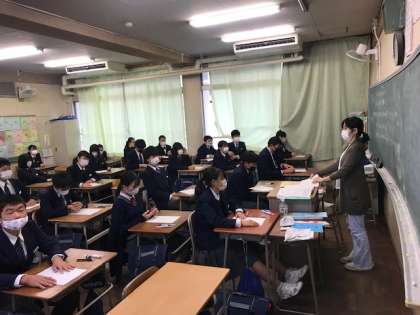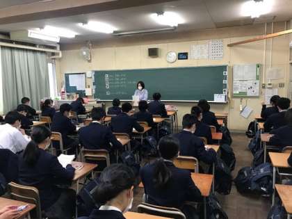 社国数英理の順でテストが行われます。テスト前の1/2組の様子です