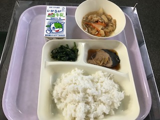 なまりぶしのしょうが煮・なめこのみそ汁・ほうれんそうのごまあえ・ごはん・牛乳