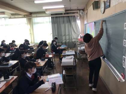 3年1組の理科、2組の英語です。3年生は昨日から進路懇談が始まっています。