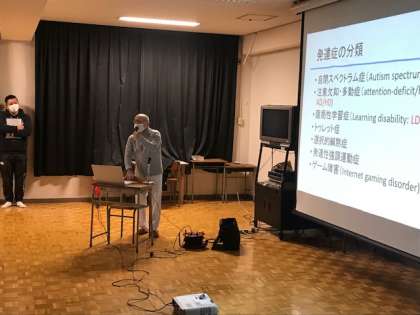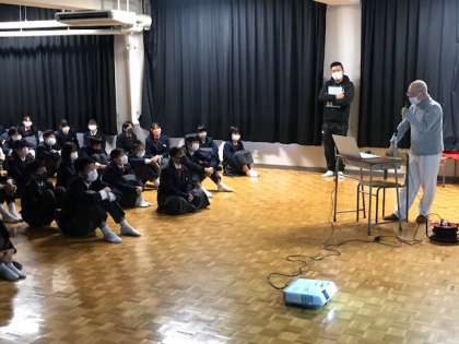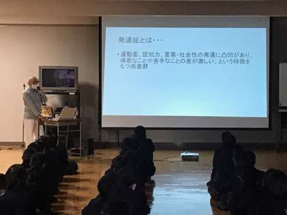本日4限、3年生は大図書室にて、旭こども病院から来ていただいた先生から、障がいについてお話を聞きました
