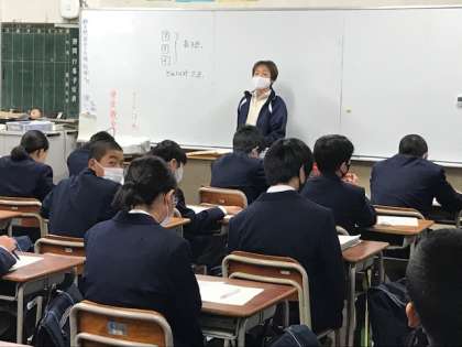 1年3組の英語、4組の数学です。期末テストの解説をおこなっています。