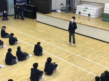 今朝は非常に気温が低いですが、どの学年も朝から集会を行っています