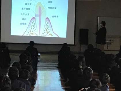 本日6限、1年生は歯科医の先生から、歯のお話を聞きました