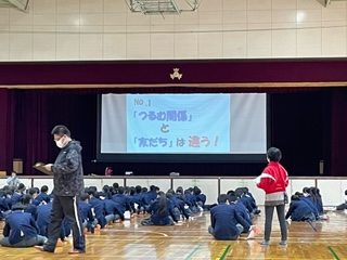 2年生は学年全体で金曜56限、各クラスで月曜1限、「友達」を題材に道徳取り組みました